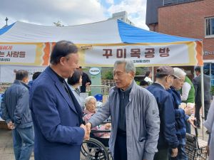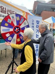 성심요양원 앞마당에서 나눔이음장터가 열려 어르신들이 많이 참석하였습니다.
