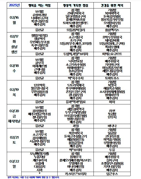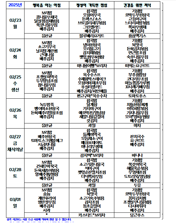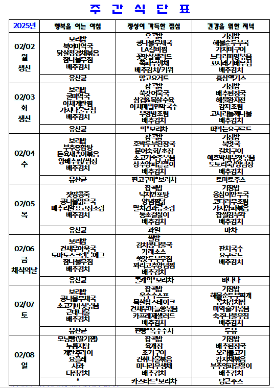 2월 식단표