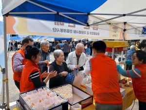 성심요양원 앞마당에서 나눔이음장터가 열려 어르신들이 많이 참석하였습니다.