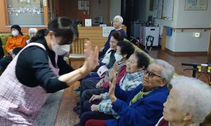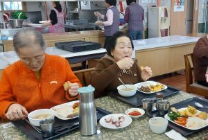 음식나눔 후 오후에는 어르신들이 윷놀이를 하시며 '두모'로 다른 팀의 말을 잡아서 기뻐하고